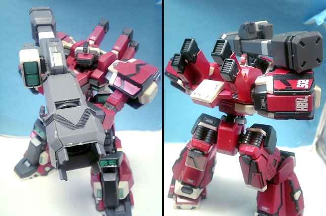 後ろから見ると変形の過程がなんとなくわかりますが、これをフル可動で再現したら、すぐに壊れてしまいそうです・・・w